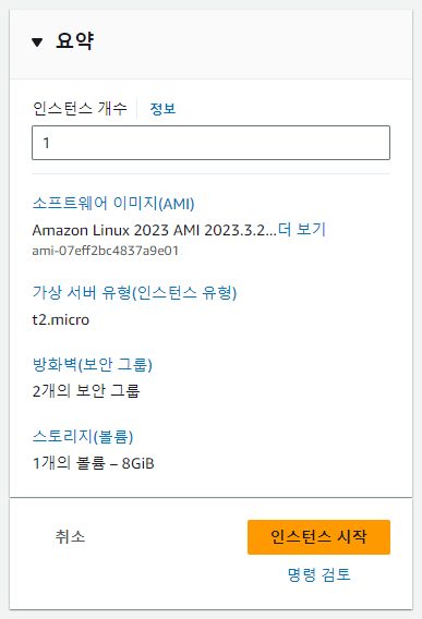 설정이 모두 끝났다면 - 요약 확인 - [인스턴스 시작]